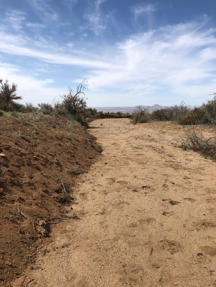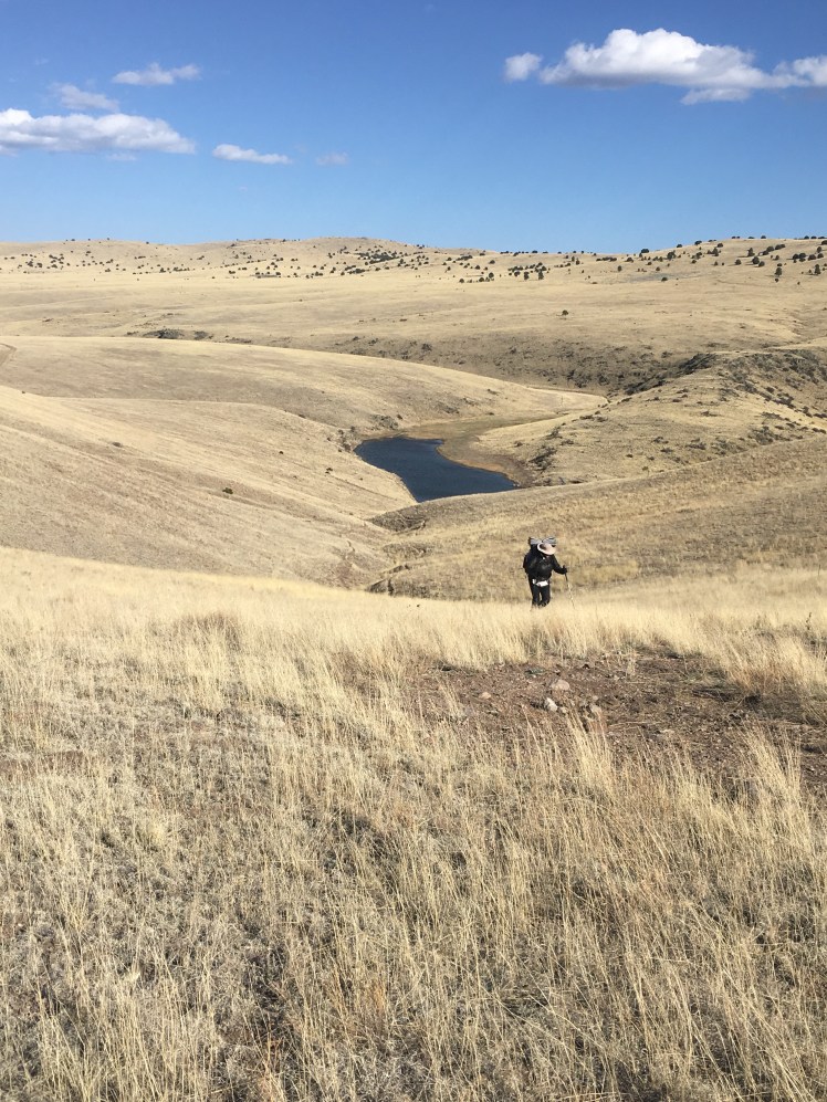 It was an early start out of town. Ghost and I cut across several pastures of weeds broken only by swaths of cactus and large arroyas following our gps and looking for blazes.