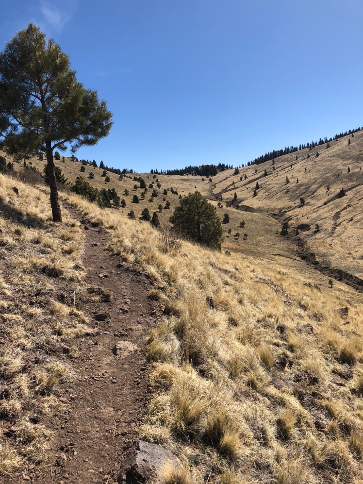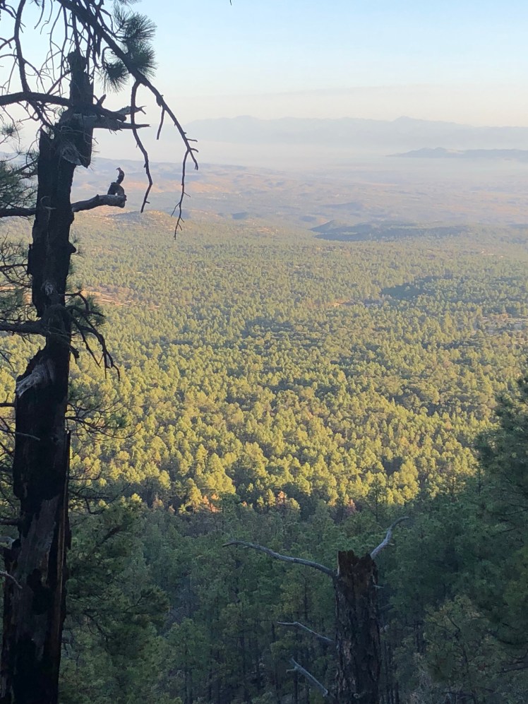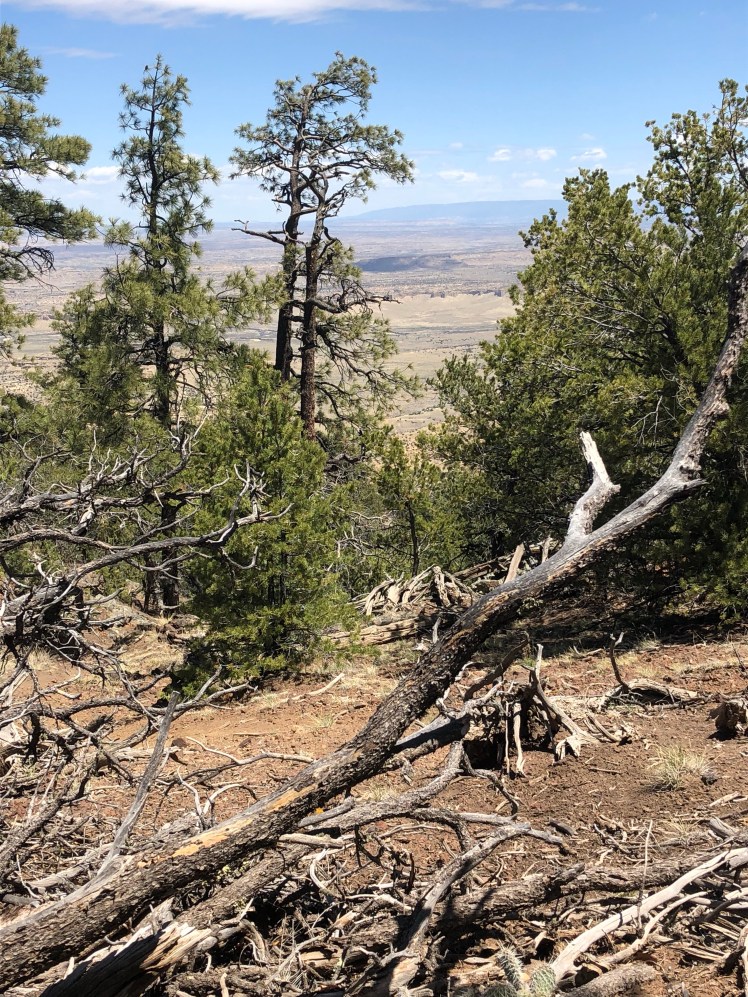 The next day was all on trail through tall pine forest ending with a climb onto Mesa Camino.