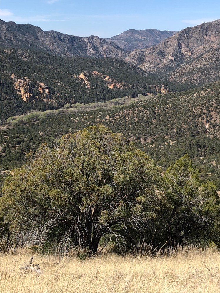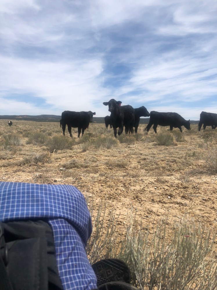 Hiking across cow pastures in open sun was hot and exhausting. It felt as if we were not making progress although we were slowly gaining altitude on the way to the Burro mountains.