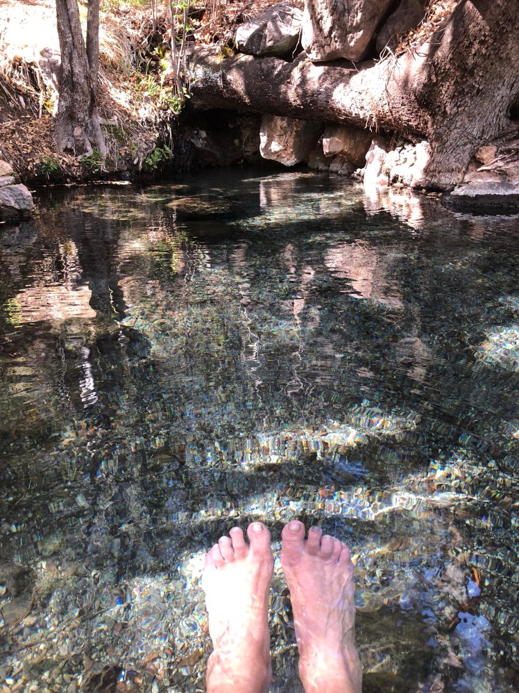 Soaking my feet in Jordan Hot Springs.