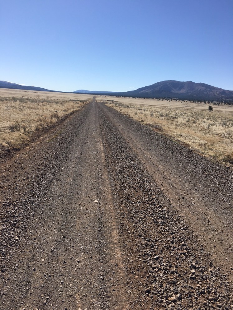 We road walked Highway 603 until we reached York Ranch road where we continued along this very flat straight gravel road.