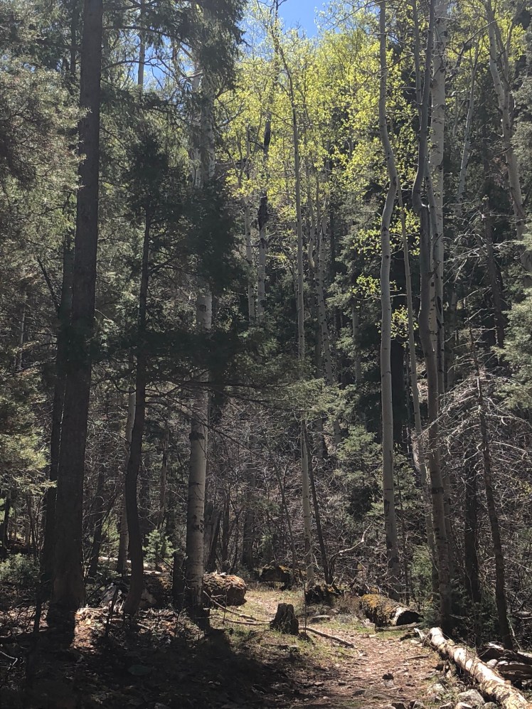Sunday morning I hiked up from highway 64 where Ghost and I left the trail. The morning jeep trail soon turned into trail staying between 10,000′ to 11,000′ for two days.