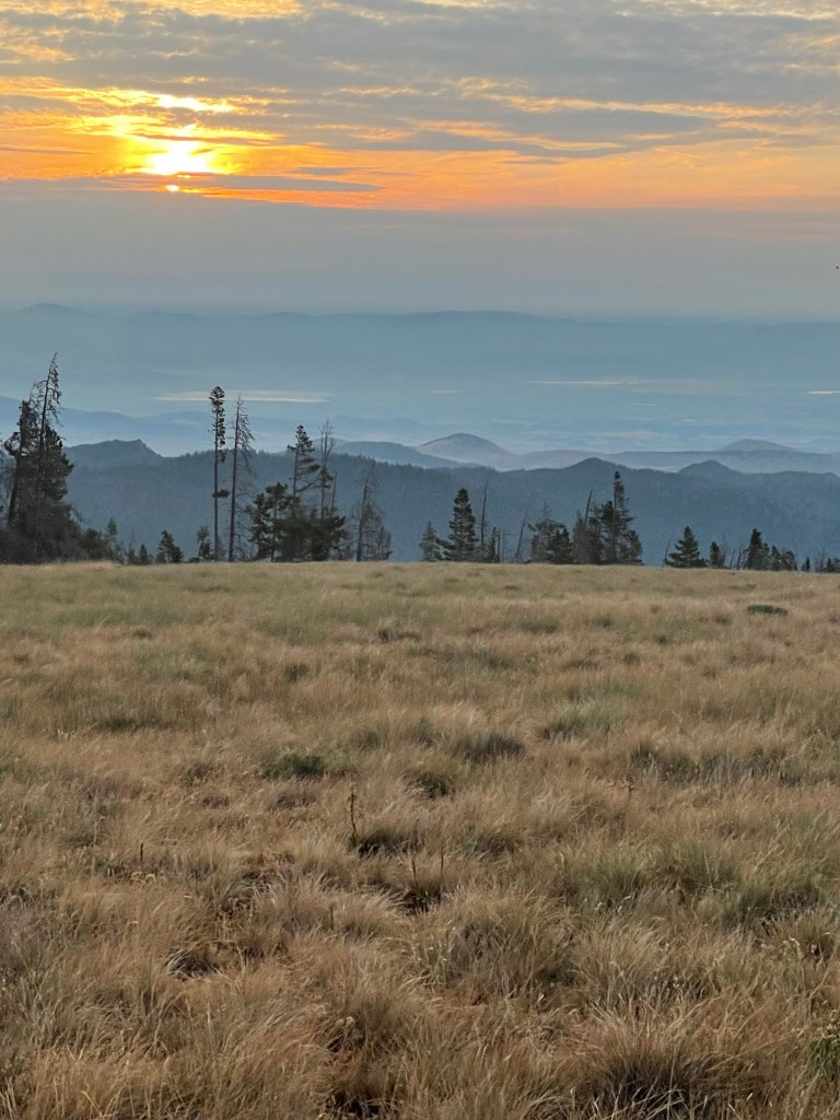 The third night, I found a flat spot on the edge of a ridge. This is the sunrise in the morning.