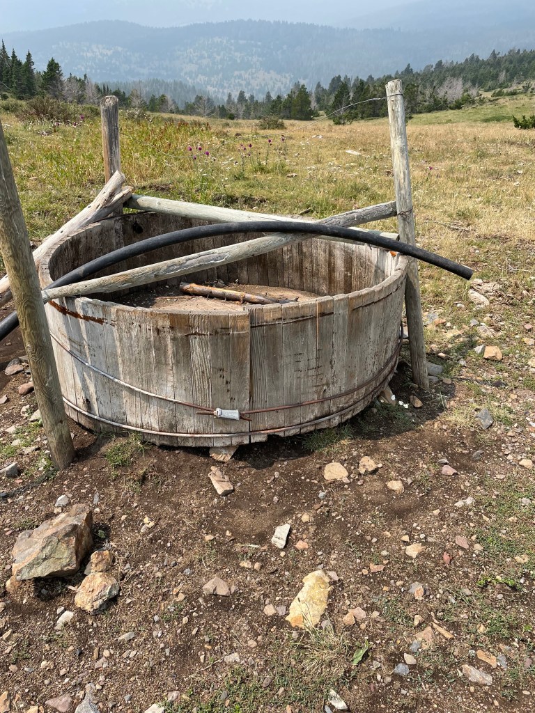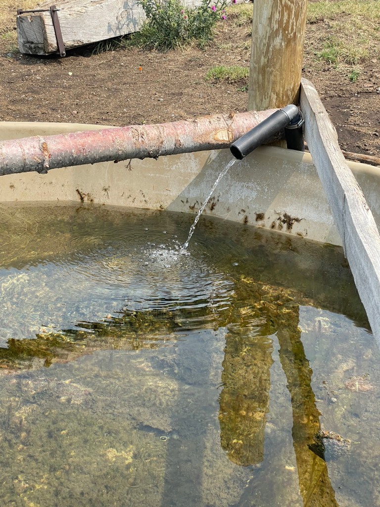 Luckily, this was not far away. Happily, I started yesterday with 4 liters of water because by the time I reached this point I was out of water and happy to see the spring feeding the trough.