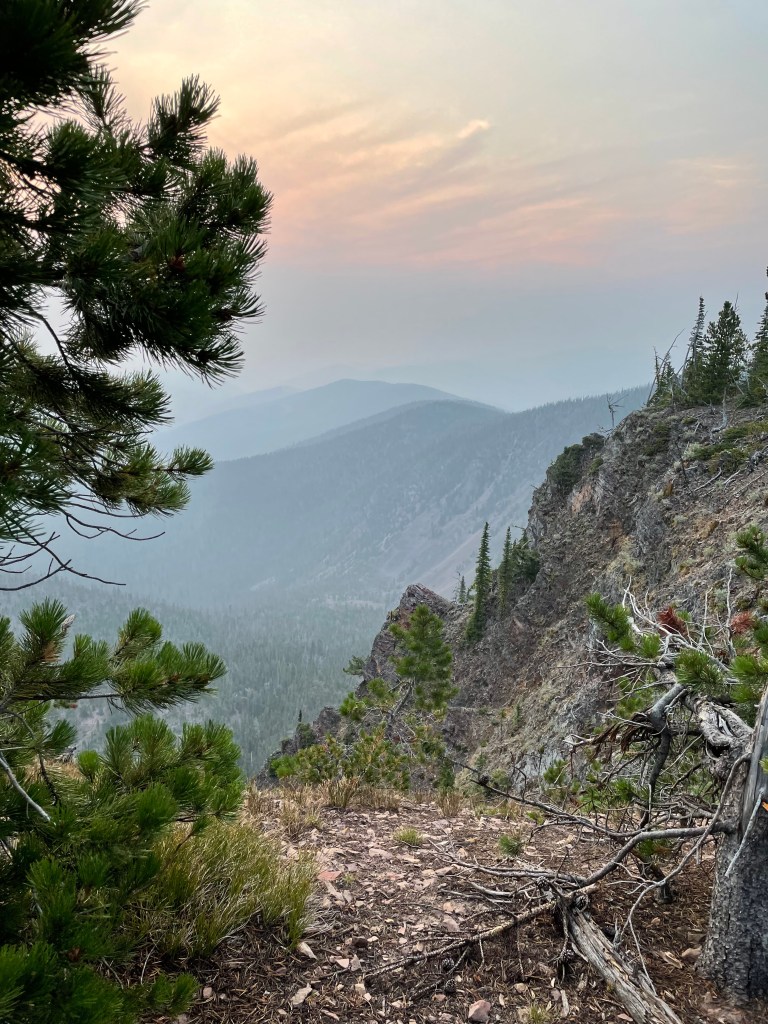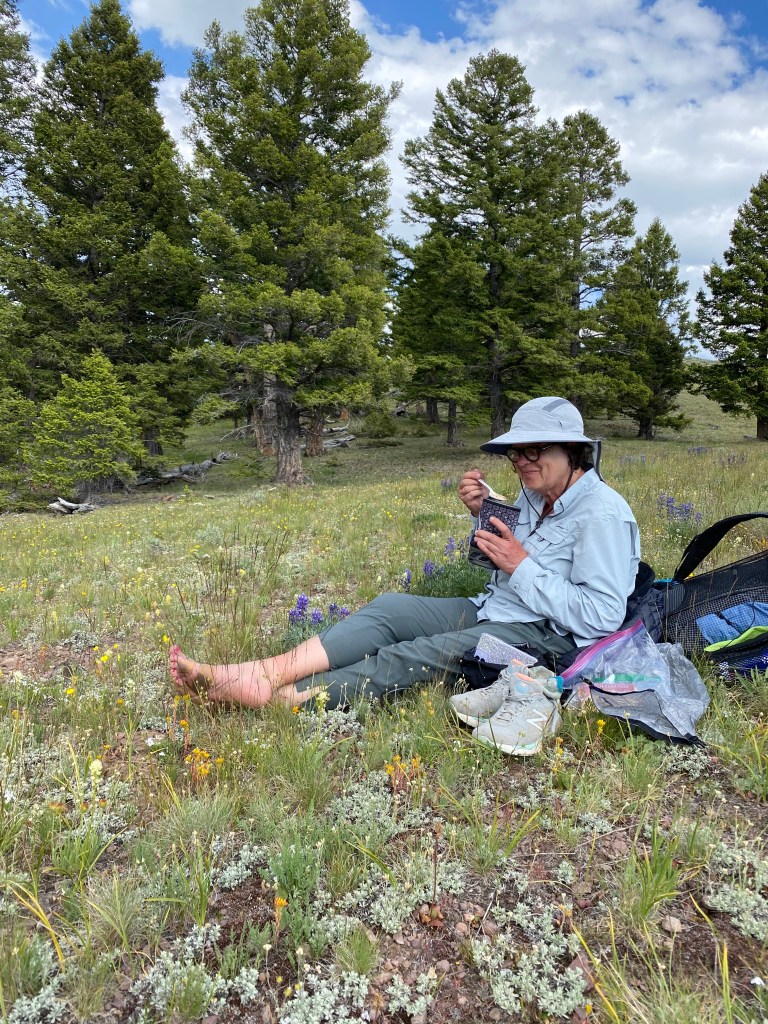 Because of the extreme heat, one morning we started the trail at 3am. Soon we came upon a steaming pile of grizzly scat, with a trail of pee showing we had interrupted the bear. Shortly we came to a creek crossing and on the far side we saw wet grizzly tracks and splashes as the grizzly crossed in a hurry ahead of us. About a mile down the trail, I heard the bear crashing through the forest as it tried to get away from us. I have always been disappointed I did not documents that pile of poop and the tracks out of the water with my iPhone camera.