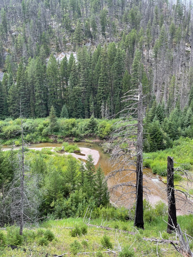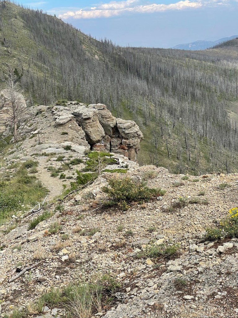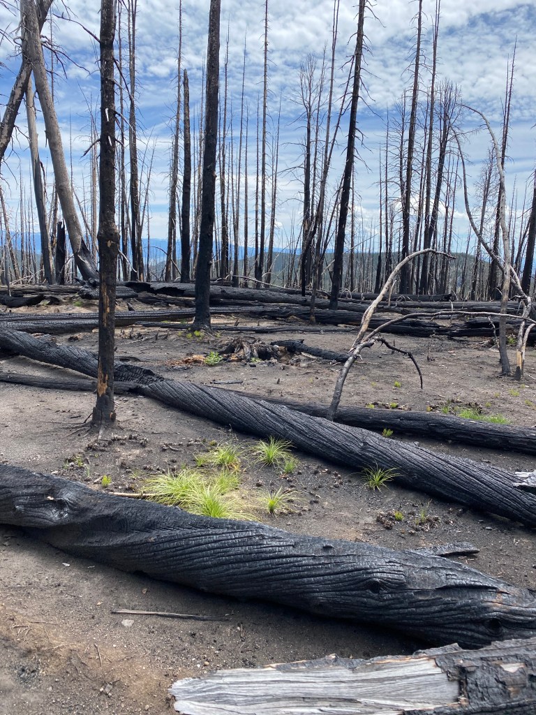 Leaving Darby we saw many people on mountain bikes on the trail the first day. This first day was relatively flat. The second day we ran into many miles of burn blowdown and ran into a young lady thru hiking nobo.