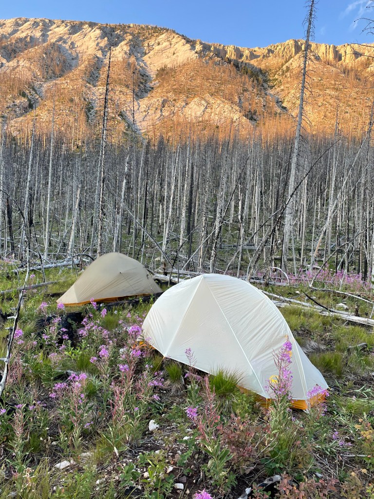 We camped the first night a few miles in as dusk overtook us. It wasn’t a campsite. We moved brush around to make a flat area to pitch the three tents.