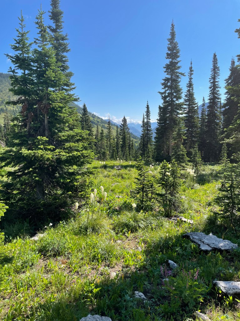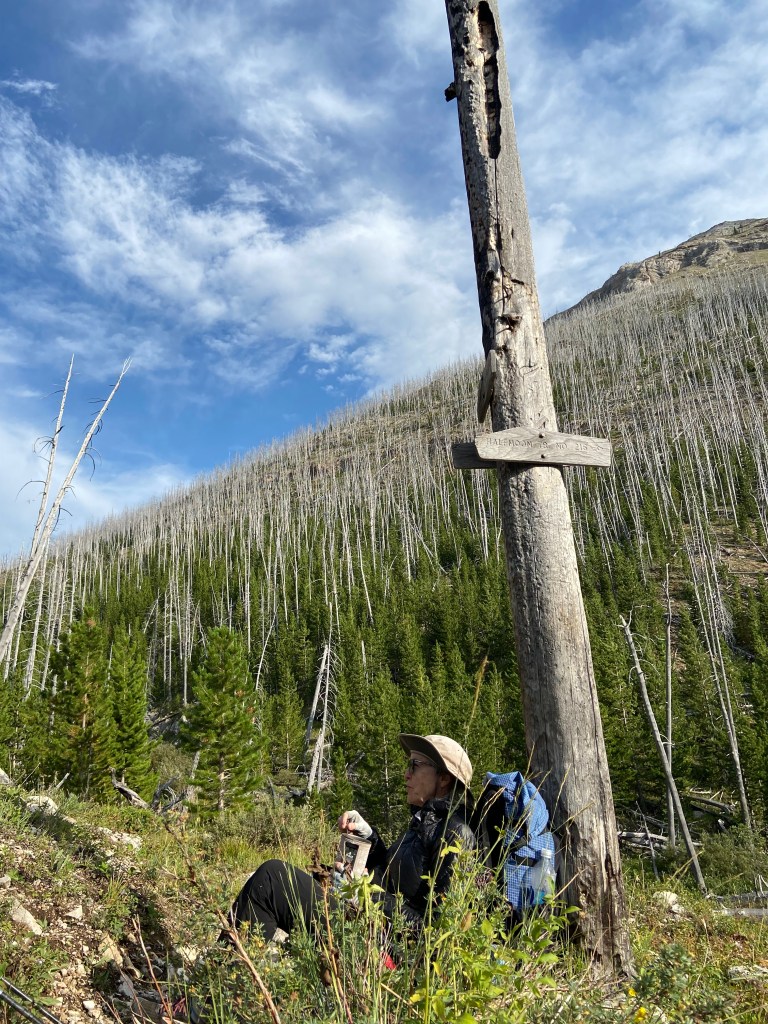 Hyojin and I took on the Bob Marshall Wilderness Area in the summer of 2022 starting back at Benchmark after bailing there in 2021. We were joined on this section hike by Shelley. Shelley’s husband, Bill, drove us to Benchmark and dropped the three of us off at the trailhead by Benchmark. Earlier we met up at Shelley’s place outside of Lincoln, MT. We planned to get a few miles in on the first evening after the drive in so the first full day of hiking would be less difficult.