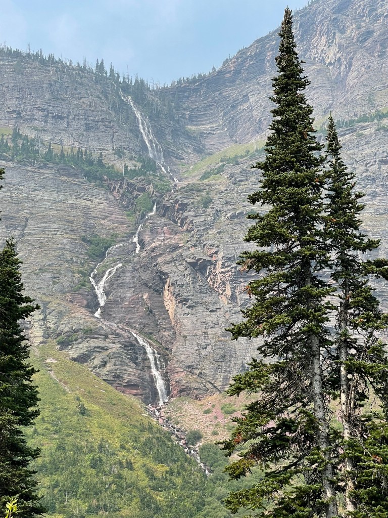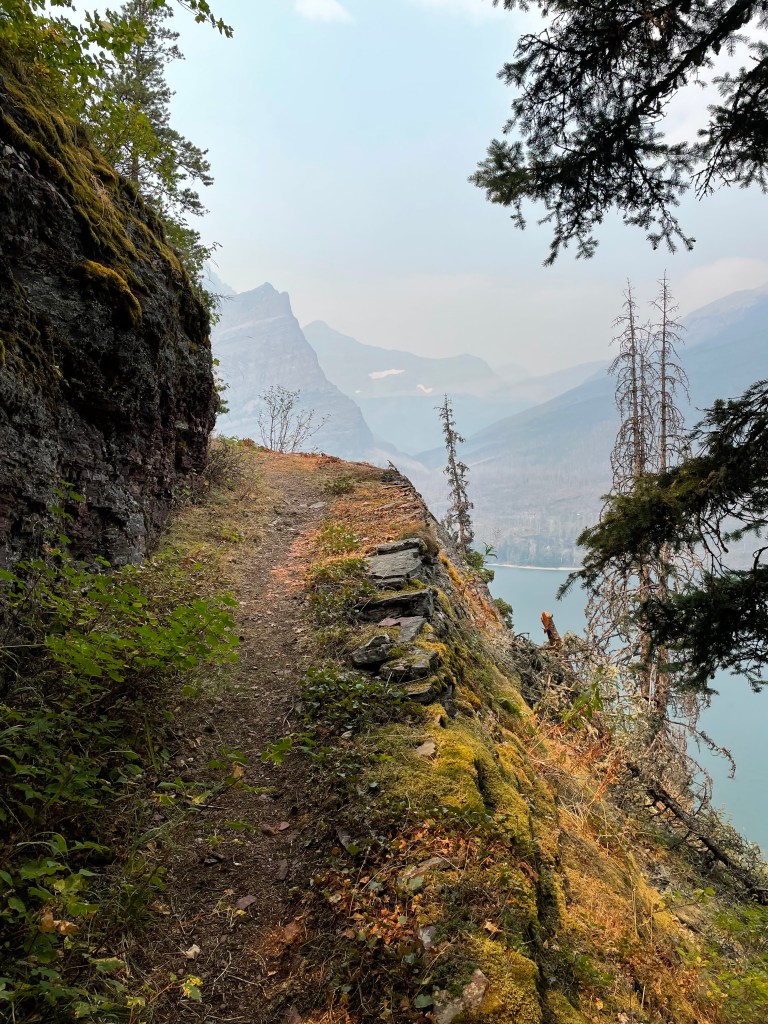 The day spent hiking with St. Mary lake on right side of the trail and waterfalls on the left side of the trail.