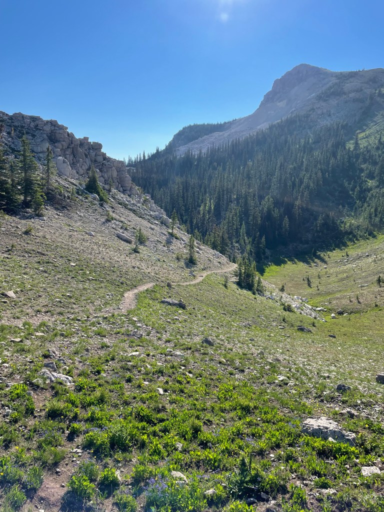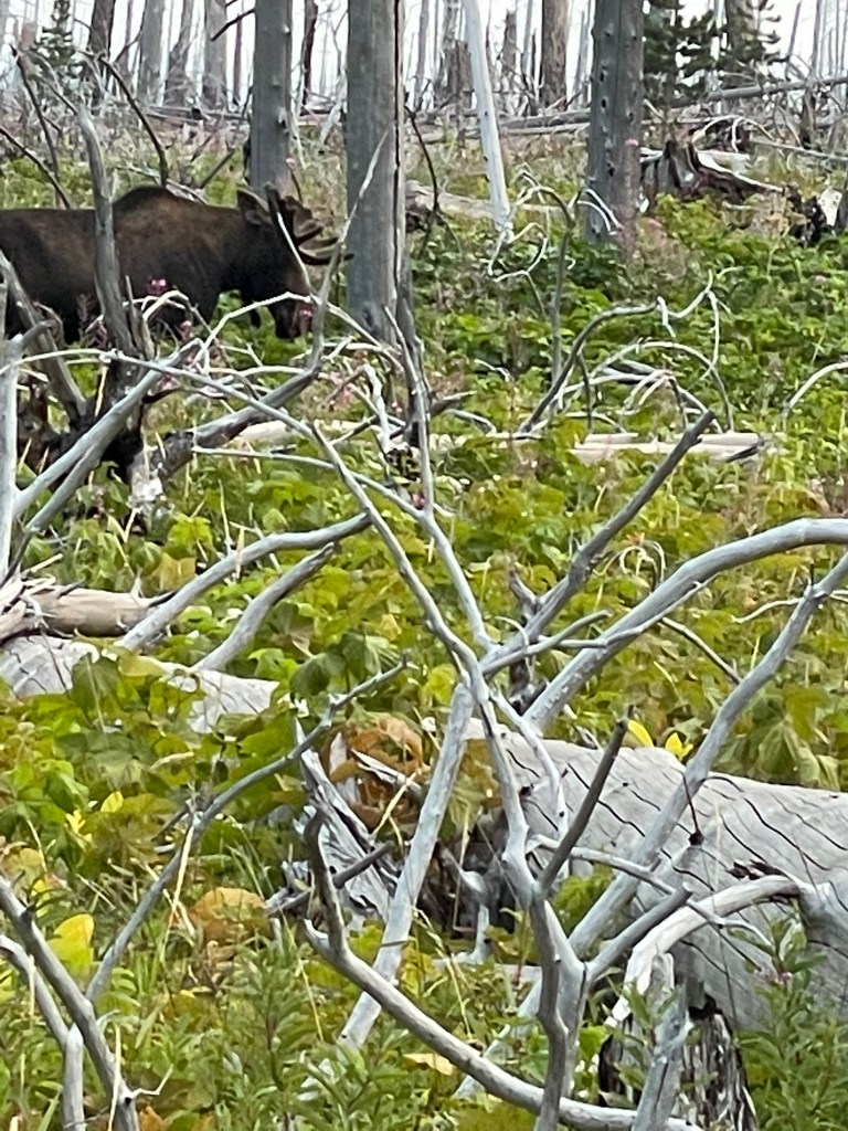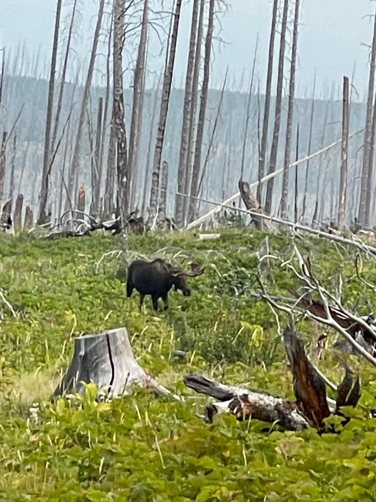 This section was hiked alone. I drove a rental car to Helena then hired a shuttle driver to deliver me to McDonald Pass. I arrived at the trail head late in the day around 7pm. It felt good to get a few miles in after the long drive. As soon as I was a couple of miles up the trail I saw a moose. We stared at each other as the trail circles around.