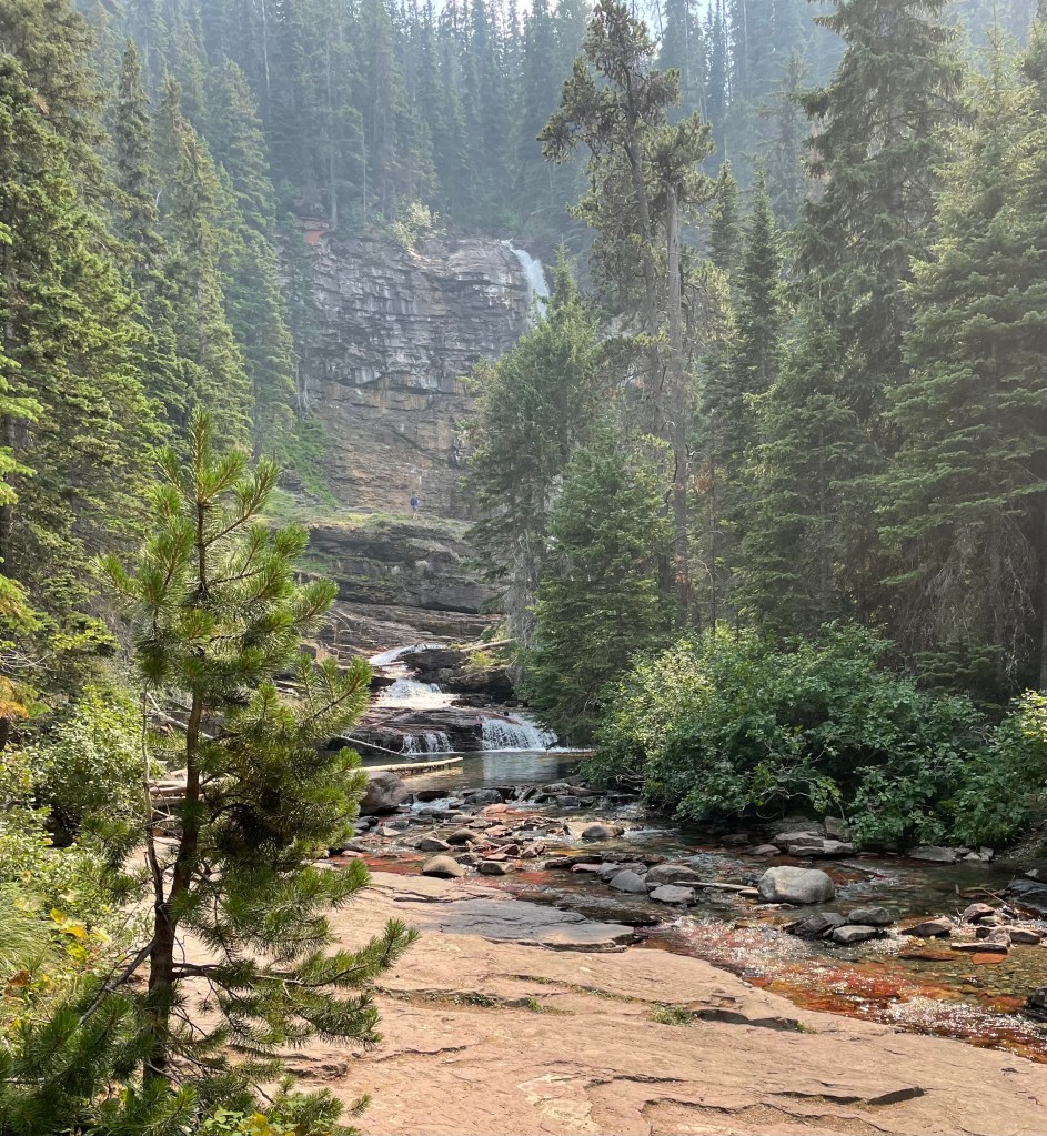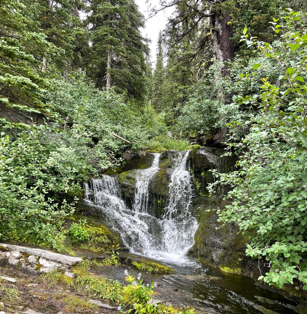 Long valley walk headed to Red Eagle Lake with waterfalls along the way.