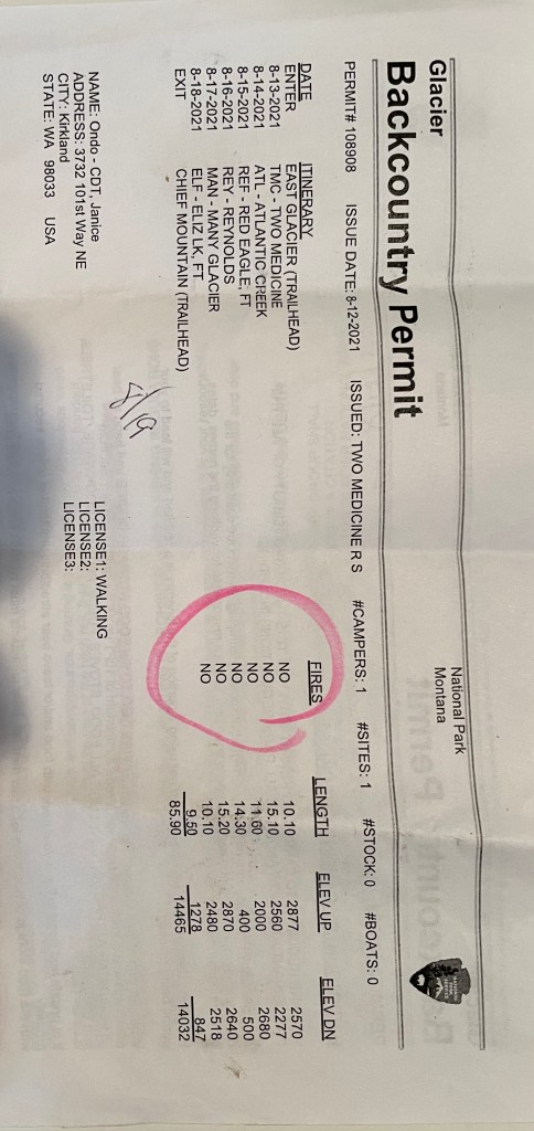 My Back Country Permit was issued in Two Medicine. I asked for miles between 10 to 15 miles per day and let the Park Ranger designate the camp grounds. I stayed at the East Glacier Lodge two nights as all the hiker hotels were booked.