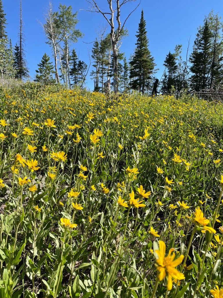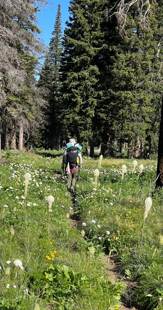 As I hiked to lower altitudes it became a beautiful hike through open areas of wild flowers broken by stands of forests.