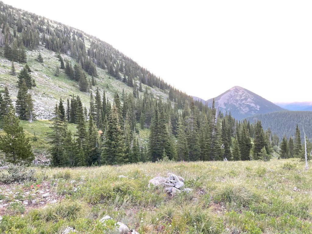 The trail off of Hwy 70 at Battle Pass starts at 9,900′ and climbs over 2,000′. I started late in the day July 13, 2023, as it took some time to find the trail. I ended up using my GPS.