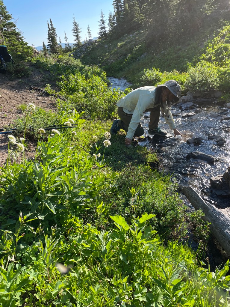 After lunch Hyojin pushed me to pack up and try to get our miles in for the day. My tent was completely wet and I loaded it on the outside of my pack. By the early evening my water proof gloves were entirely wet. We made it to a creek as we completed our 17 miles and decided to cross over before camping.