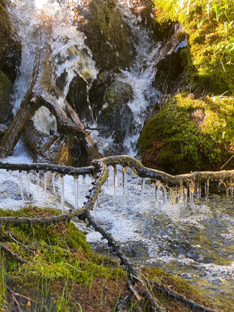 First thing in the morning we had to cross another creek, so much for keeping our feet dry in the morning. My hiking pants and shirt were still wet and I hiked out of camp in my base layer/pajamas. We did have intermittent sun breaks during the day and we stopped each time the sun came out to dry out our gear.