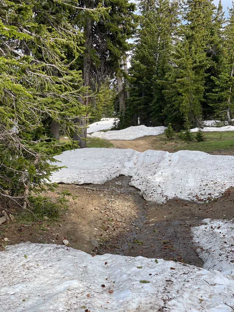 We saw snow on the edges of the ridges and sometimes on the trail.